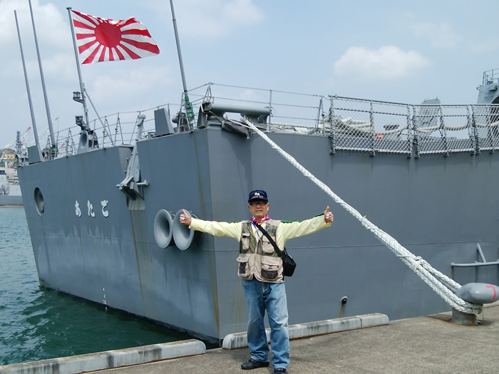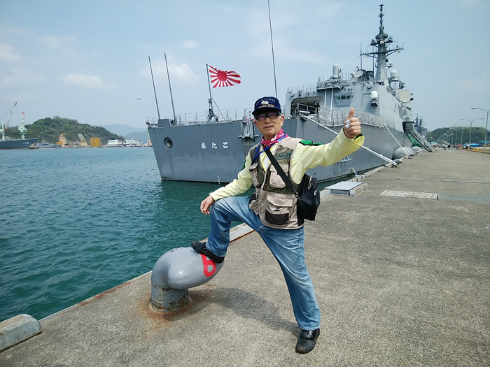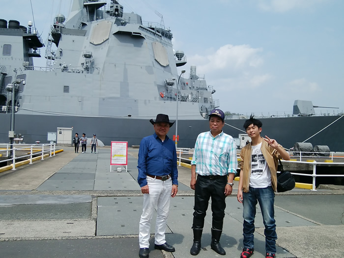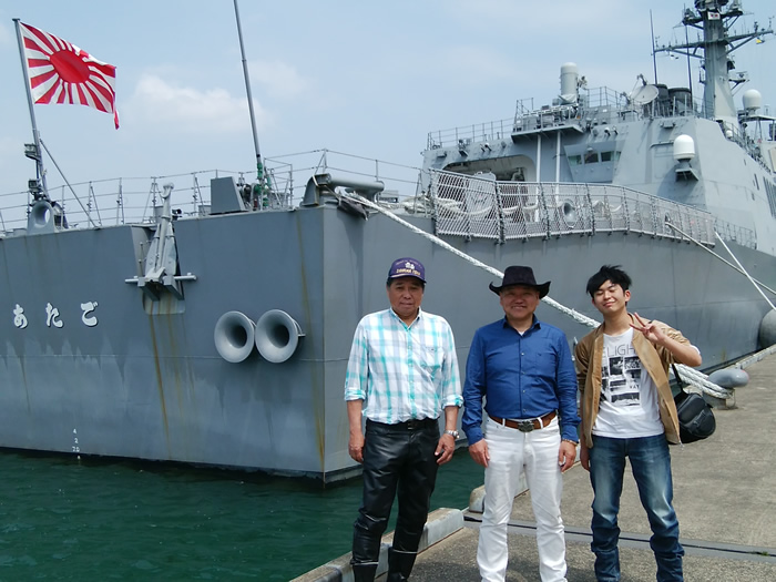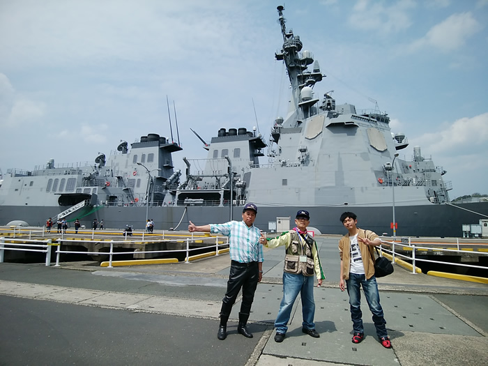 ![]() 護衛艦「あたご」と記念写真 |