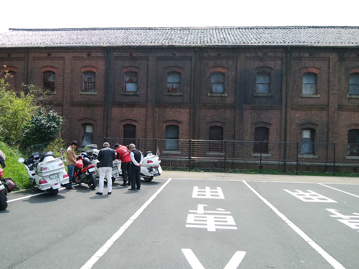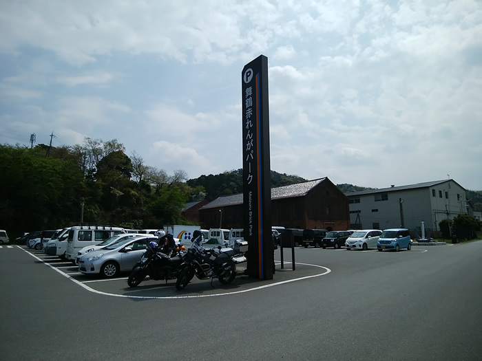 ![]() 舞鶴赤れんがパークの駐車場にバイクを停める。 |