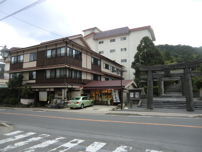 老舗 いわき旅館全景だ。長崎カステラのお店が旅館と合体している。 |