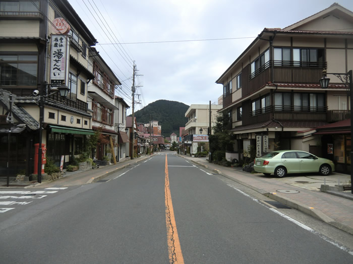雲仙温泉街だ。いわき旅館は右側や。 |