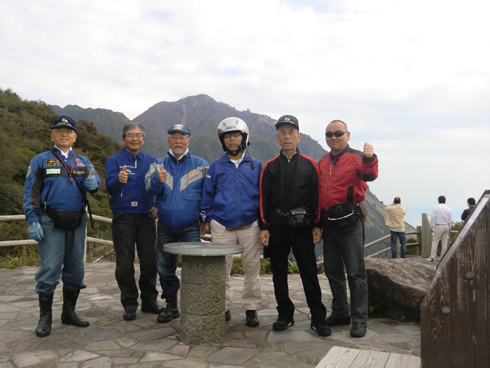 ![]() 雲仙岳をバックに記念写真。仁田峠展望台にて。 |