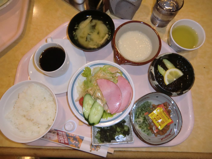 熊本ロイヤルホテルの朝食。魚はやきたて。ご飯はとてもおいしい。お代わりしました。 |