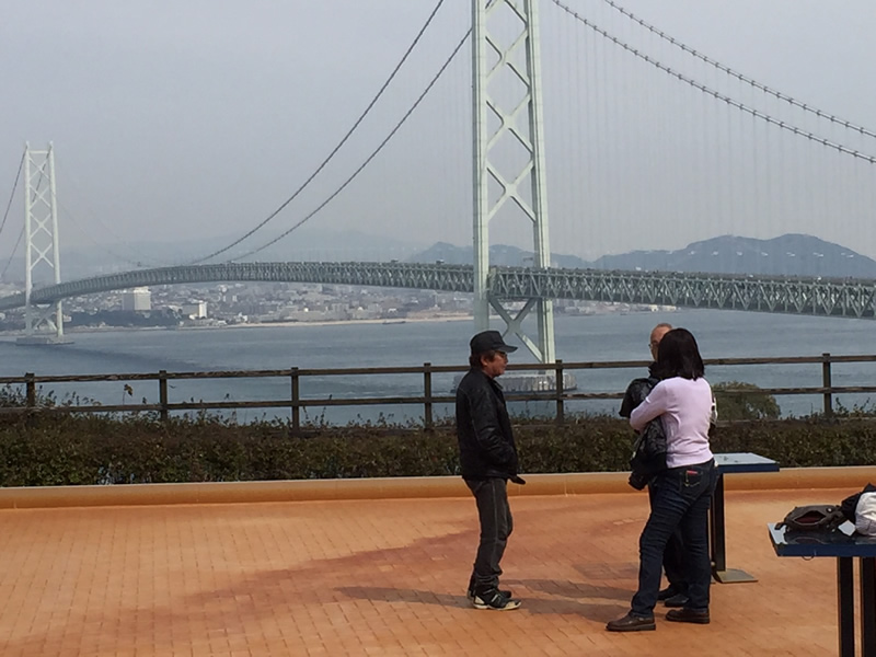 松帆の郷から明石海峡大橋を望む。