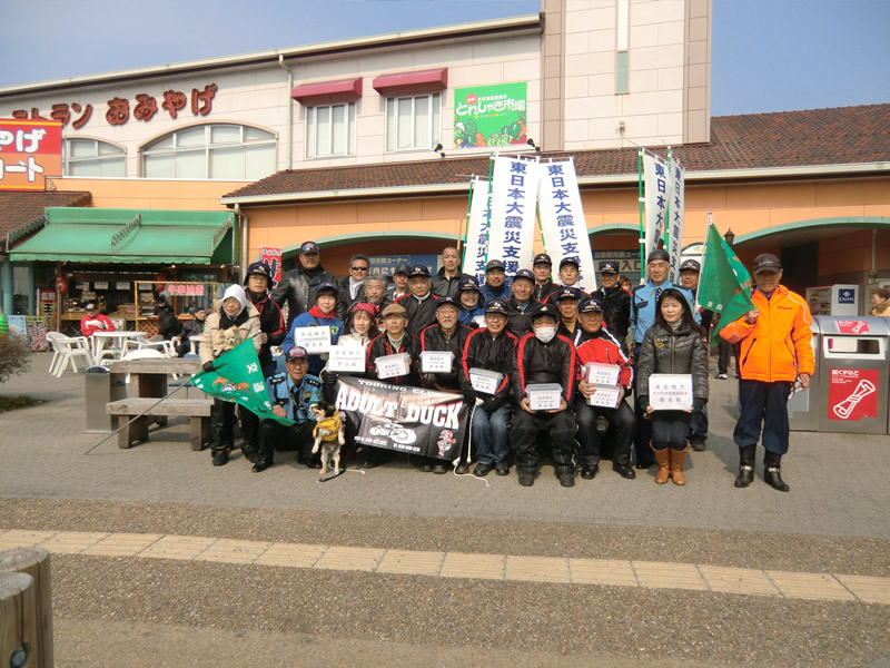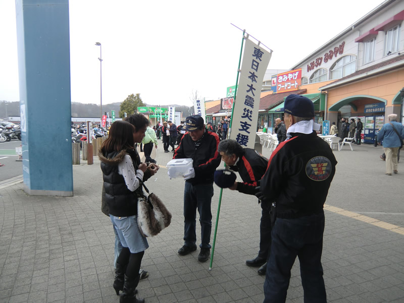 定例ツーリングは、3月11日に発生しました、東日本大震災の支援募金活動に変更し奈良若草ハーレー会の応援の下、小雪舞う中募金活動を午前10時から午後3時まで 実施しました。