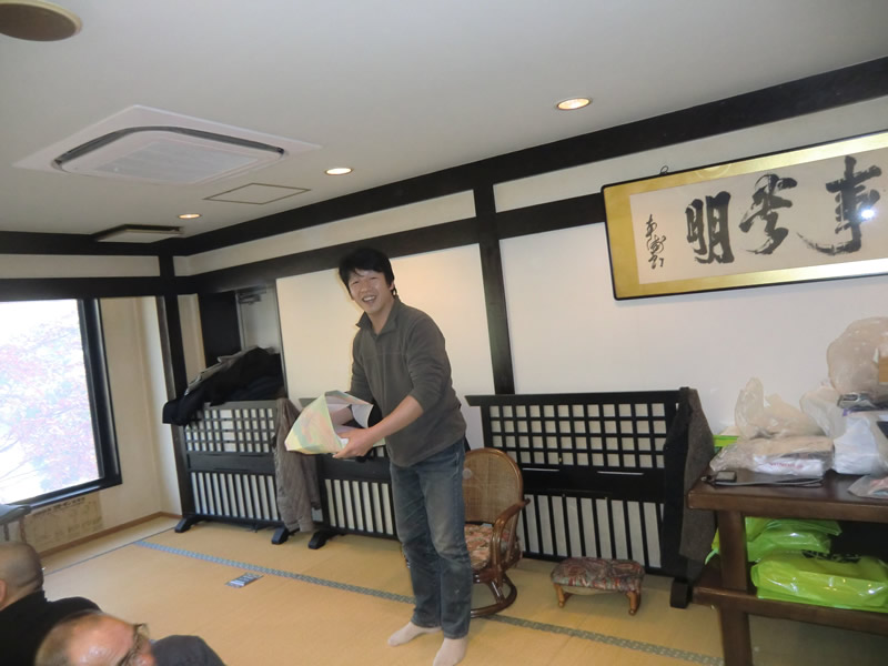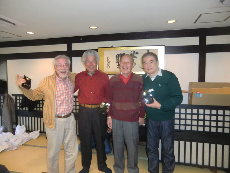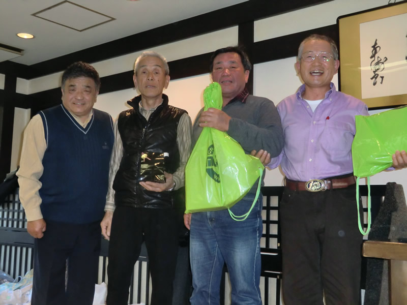 バイク談義や健康の話でなごなかな忘年会。福引で盛り上がりました。 |