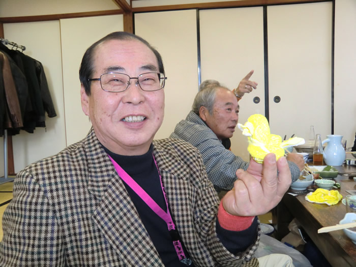 ![]() おしぼりで、イエローダックを披露する器用なはっしゃんです。 どこで勉強したの? |