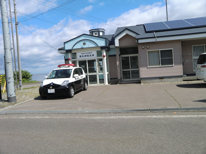 R278を鹿部へ行く途中、尾札部駐在所があった。 屋根にはソー ラーパネルがありおしゃれな建て物だ。 |