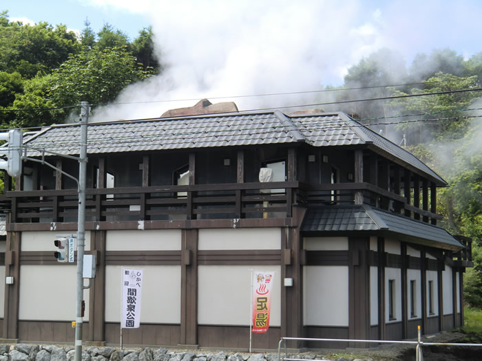 ![]() 鹿部間欠泉公園に立ち寄る。 9:30am ホテル恵風から 44.7 km 建物の上から蒸気が上がるのです。 |