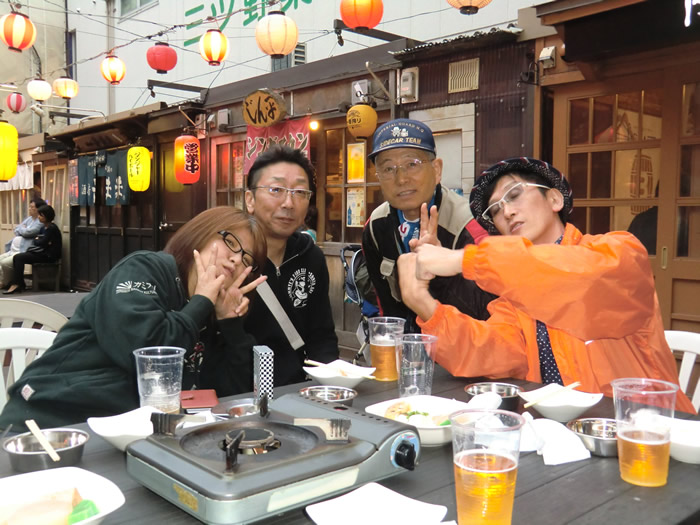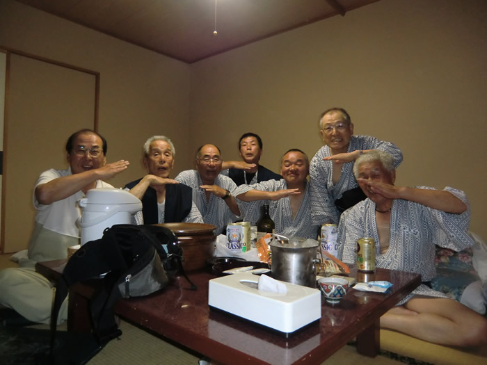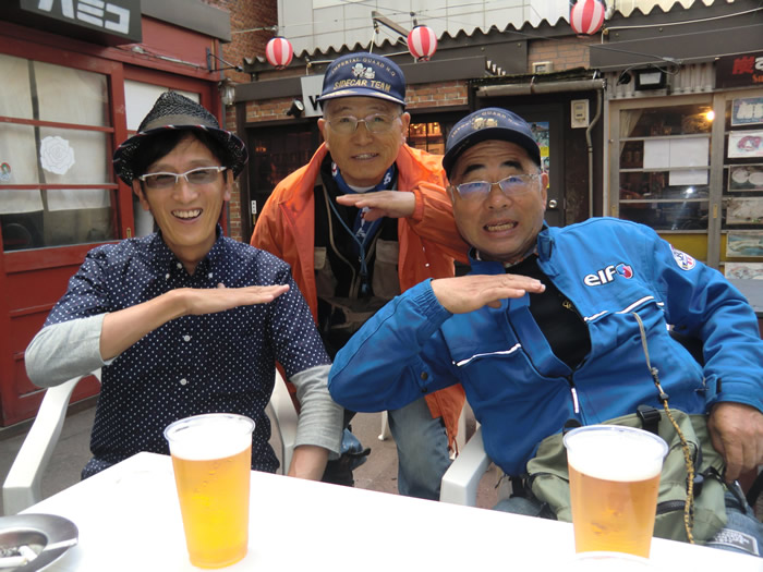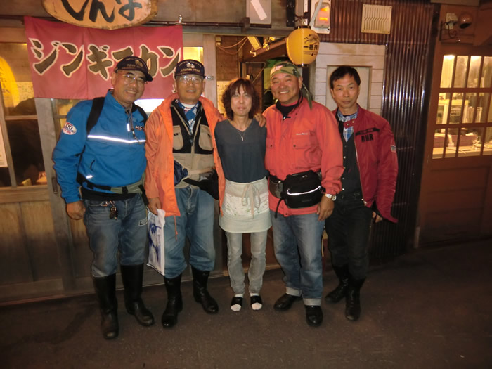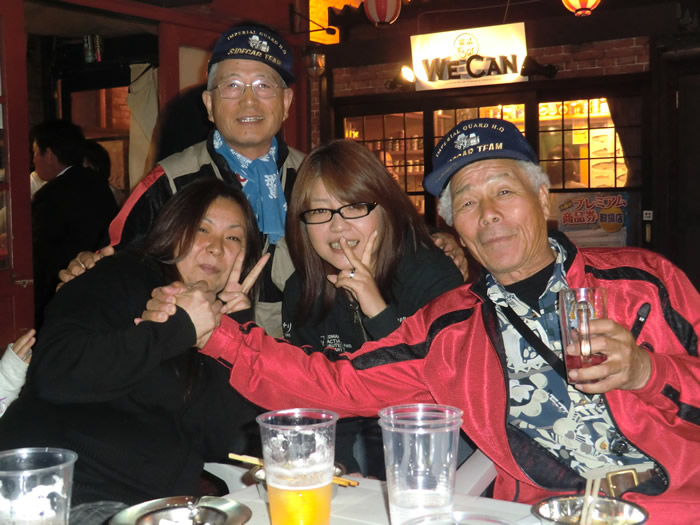 ![]() お別れの会には、じーちゃん、はるちゃん、しーちゃん夫婦が来て くれた。 北の大地で再会する友人との出会いは、ツーリングの楽 しみが倍増する。 やなさん、じーちゃんにアイーンを強要するも 上手だった。 |