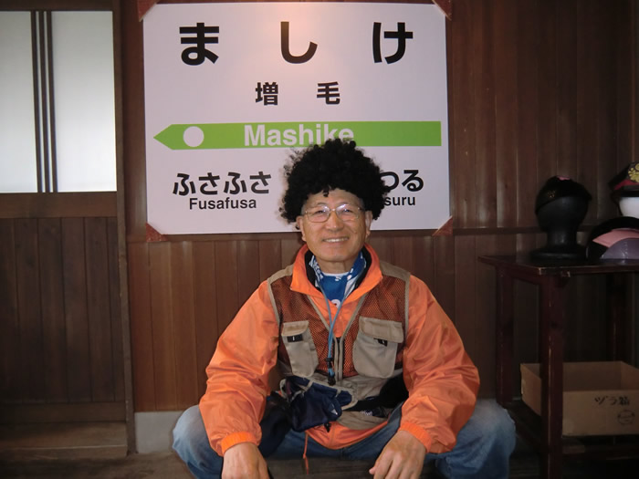 ![]() 蔵元の売店に「ましけ」の駅が有り、つるつるとふさふさのカツラが 置いてある。 きんちゃんは、つるつるのカツラ、やなさんは、ふさふ さのカツラを被る。 |