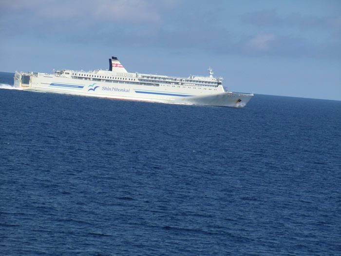 ![]() 10:15am フェリー「あかしあ」と対向する。 ブゥオー・・・。 船はすべるように走る。30ノット(時速 50km)。 |