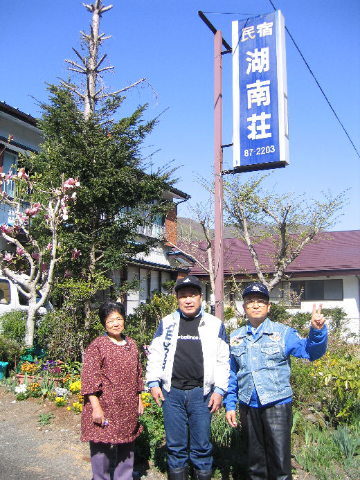 湖南荘のお母さん・O氏・Y氏 湖南荘のお母さんいつまでも お元気でね!! ● 湖南荘まえにて |