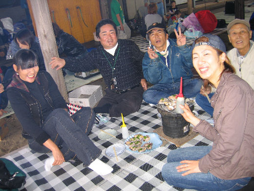 ハマグリ、アサリ、サザエ、エビ・・ ・・もうやけてまっせ お酒とおし ょうゆをかけてんか!