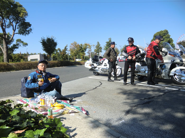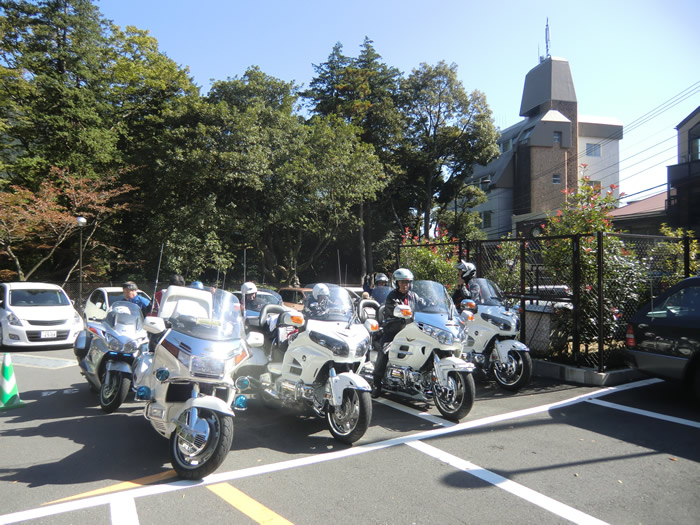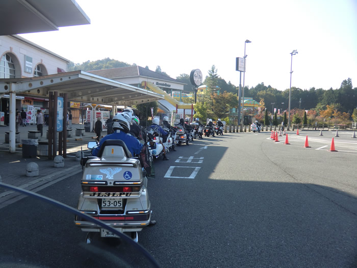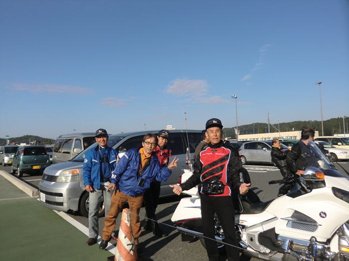 ![]() AM 8:30 出発準備をするメンバー。 重やんは、初めての参加。 特別参加の橋 やんは、高速はGLや、でハーレーからGLに乗り換えての参加だ。 GLが6台。 針テラスにて。 |