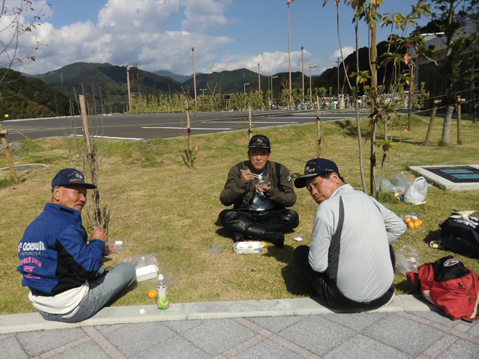 ![]() 芝生のところでピクニック気分。 やなさん、ミカンを押し売りする。 新東名・静岡SAで。 |