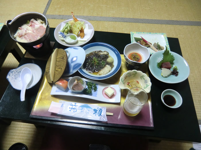 ![]() お料理です。 夕霧荘オリジナル・箱根和豚のシルク味噌鍋にマッタケごはん等々、 ごちそうがいっぱい。 満足じゃ。 |
