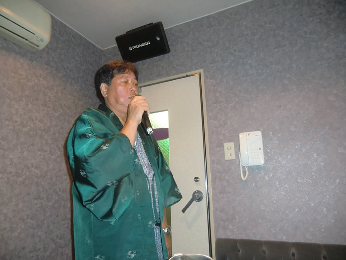 ![]() 二次会は夕霧荘カラオケルームで熱唱のやぶちゃん。 |