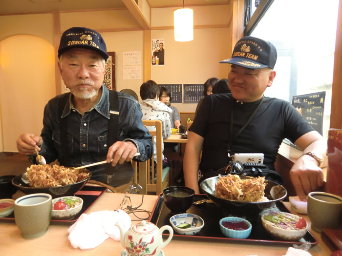![]() 桜海老のかきあげ丼は、てんこ盛り。 満足のにっしゃん。食べきれず残す岩ちゃん。 |
