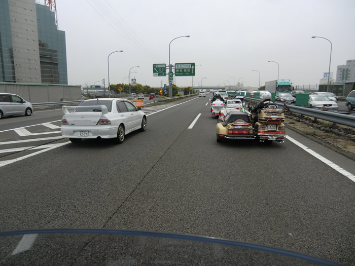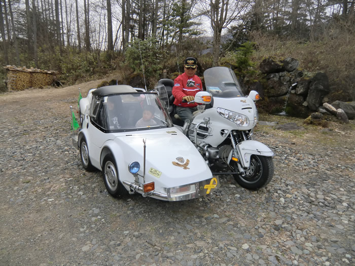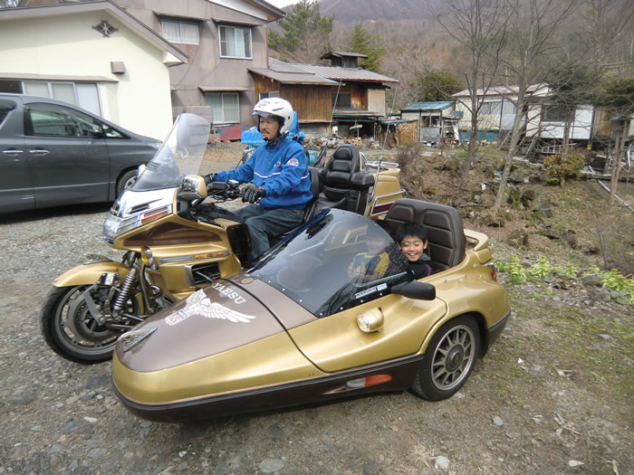 藤やんのGL1800サイドカーと2台で体験試乗出発。子供はゆったり、大喜び。