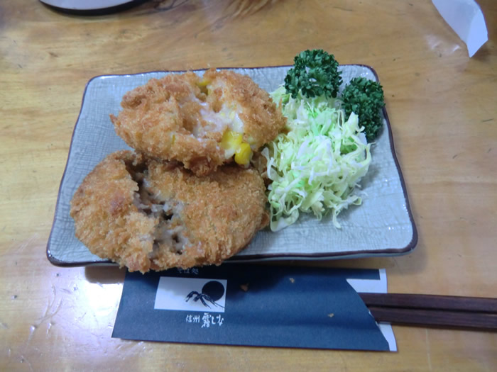 蕎麦だけでは物足りない。お薦めのミックスコロッケ(蕎麦・とうもろこし)を頂く。480円。