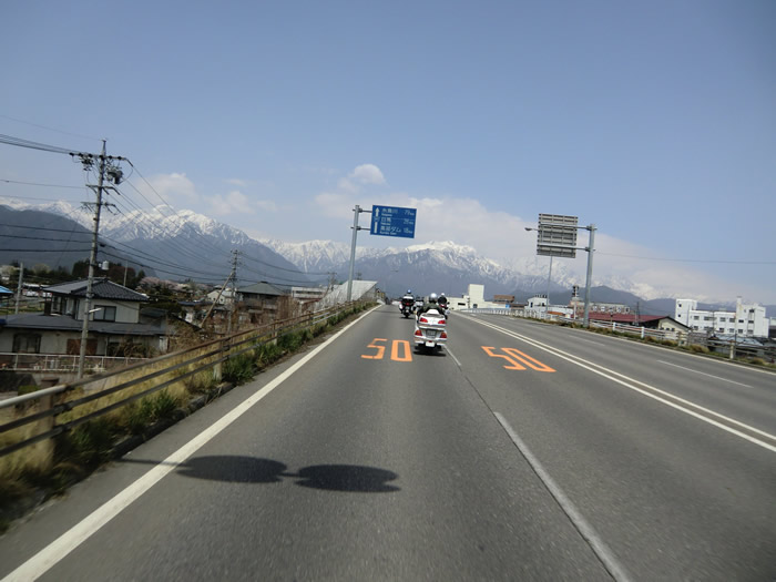 am8:15出発。良い天気になって良かった。朝は、冷え込んで寒かったので、ウイン ドブレーカーを着用。白馬方面へ走ります。山さんのお兄さんは、東京へ帰ります。 |