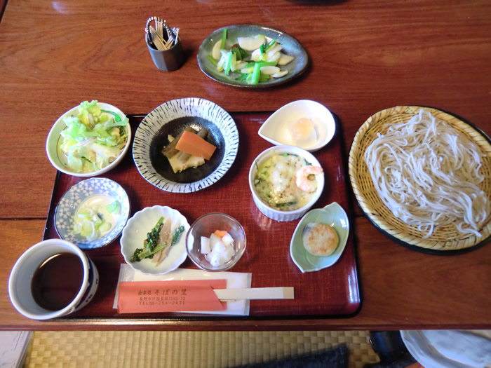 pm0:40、戸隠蕎麦のお店「そばの里」に到着。予約のお客さんが、いっぱい。 なんとか座敷に座れた。蕎麦セットを注文。30分待ち。お宿から、138km。