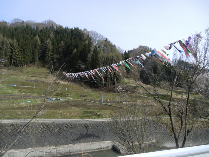 「大望峠」の展望台を下ると沢山の鯉のぼりが、見送ってくれた。またコイよー。
