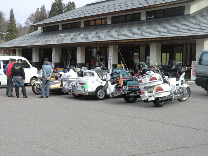 乗鞍、丘の上フュツテの女将さん、愛知の家族に別れを告げ、R158へ。安房トンネ ル(無料化社会実験区間)を出ると、R471に入る。福地温泉の朝市に立ち寄る。 神岡町からR41へ、一路富山へ。