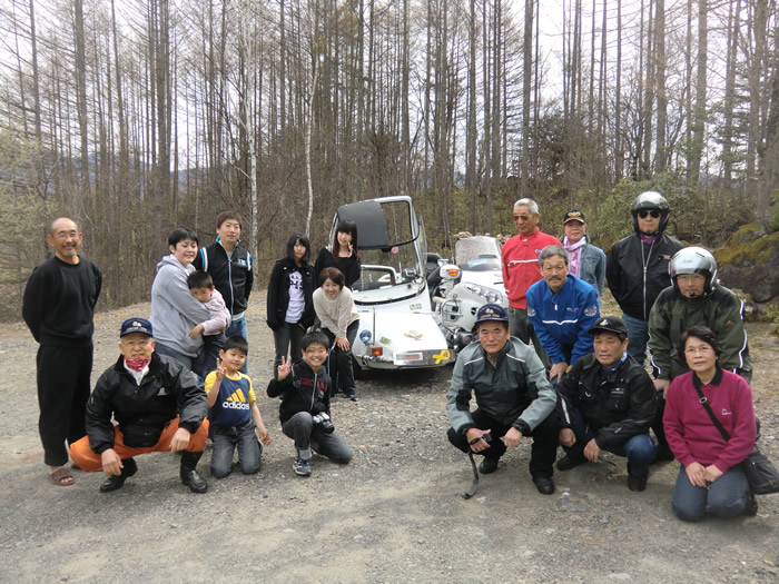 二日目に宿泊した家族からサイドカーの体験乗車を予約され、試乗に出発する山ちゃ ん。二人乗りの舟で、子供はゆったり、大喜び。私も乗りたいなあ・・お母さん。