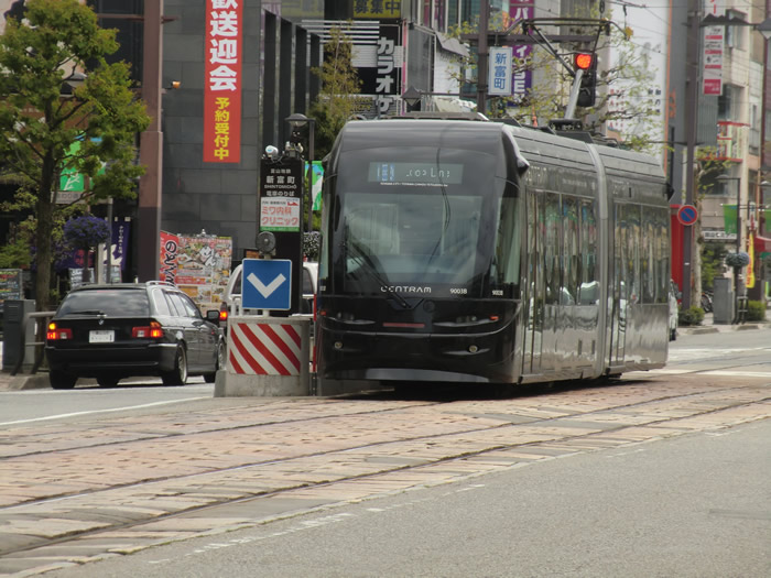 鱒寿司「川上」の前は本通。リニュウアルの路面電車です。観光バスみたいです。 北陸道の帰路、今庄IC辺りから渋滞、2台のサイドカーとお別れした。
