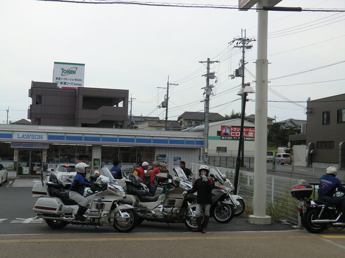 am9:30 第二阪奈・宝来のローソン、12台、出発だ。