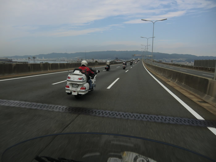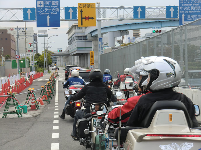 湾岸線を神戸ポートアイランドに向け走行するメンバー。 |