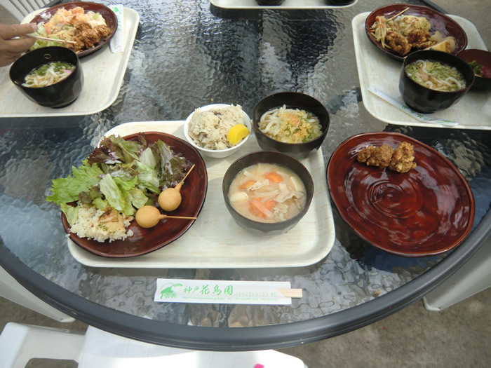 花に囲まれた所で食事すると、美味しいのだ。 |
