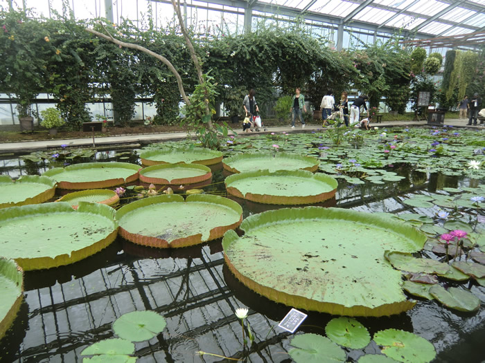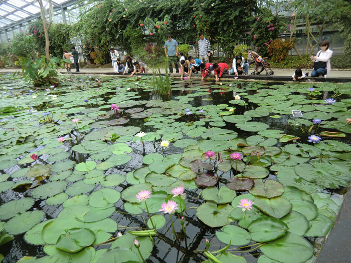 お園内には、スイレンの大きなプール。世界のスイレンが、浮かんでいる。 |