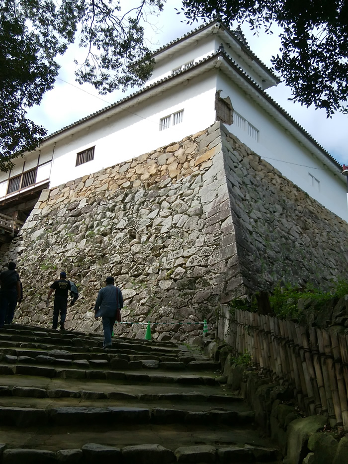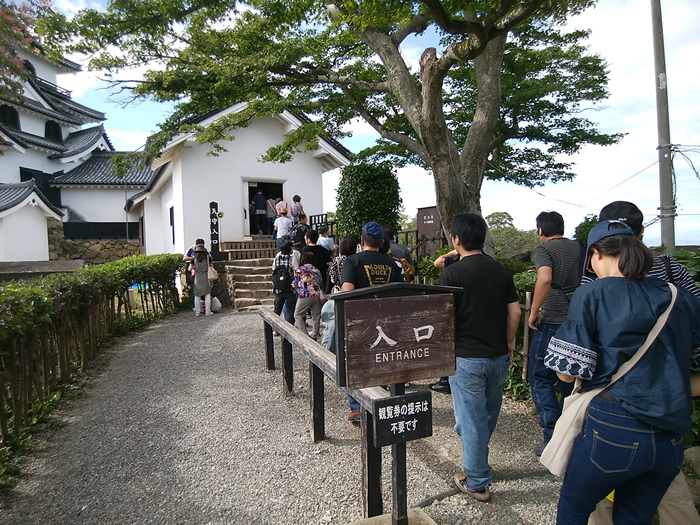 ![]() 天守閣の見学に行列。天守閣の階段は、60度。よじ登る感じだ。 |