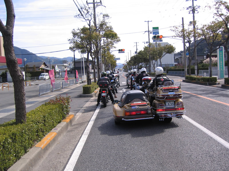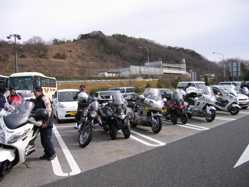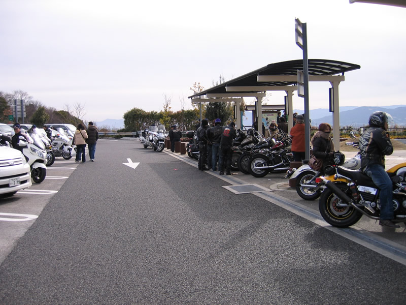 香芝SAを出発! FOKO3台・GL3台・BM2台・ヤマハFJR1300嶋@さん・BMWの中@さん 菅@さんはハーレーからスズキスカイウエーブ400に乗り換える |