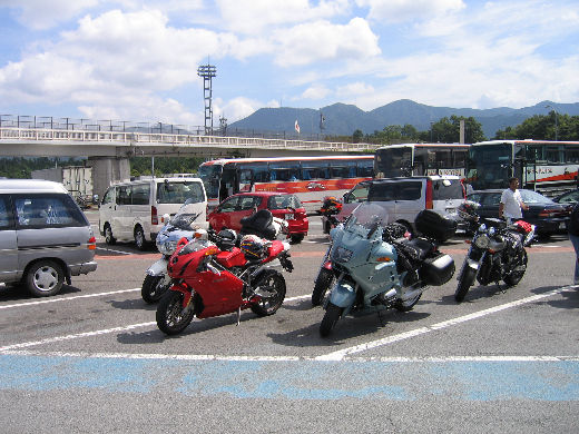 ○ 多賀SAにて メンバーの愛車・・・ドカ。BM。GL。ゼファー。CB・SF400。DS400。