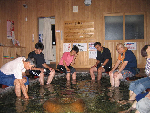 ○ 足湯でくつろぐ 深三前の重蔵神社前に足湯がオープン・・無料! 熱い目で身体まで温まるよ。