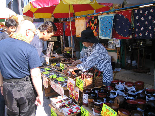 ○ 輪島の朝市・・・AM8:00からだよ! 4個で1000円に負けとくよ、兄ちゃん買うてや!