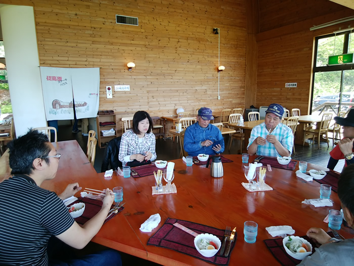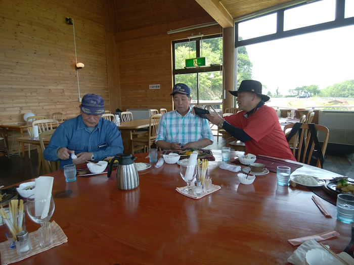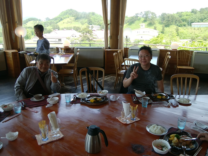 ![]() 牧場を入れて、ステーキハウス前で記念写真 スマホのタイマーに慣れてきた・・やなさん |