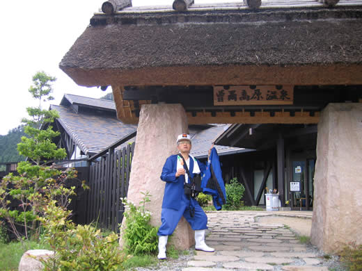○ お亀の湯の入口、かやぶき屋根がいいね!曽爾高原のカヤだね