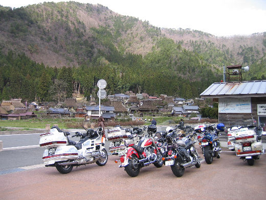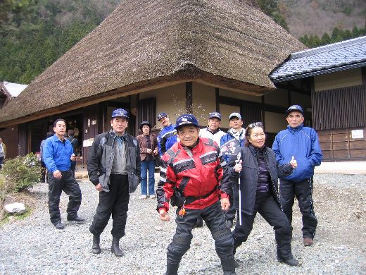 かやぶきの里に、11:40 無事到着 です ドリームランドから、4時間かかりまし た 98.5キロです