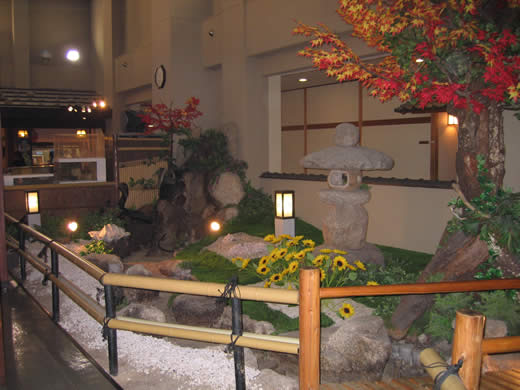 ○ 希望荘二階の食堂は枯山水の日本庭園が落ち着いた雰囲気だ・・・造園の勉強中