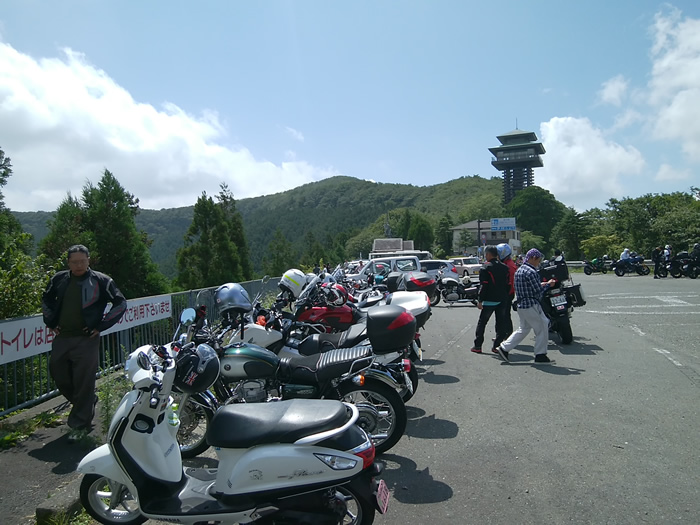 道の駅・護摩壇山スカイタワーの駐車場。 メンバーの愛車。