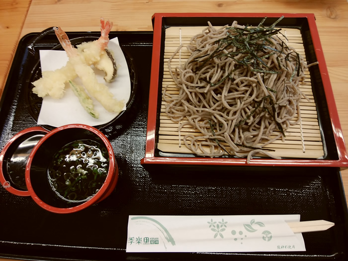 温泉入浴して、楽里龍神レストランで昼食。やなさんは、天ぷら蕎麦