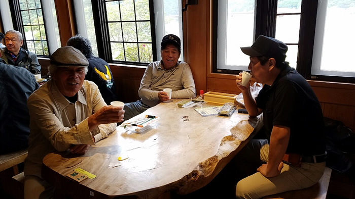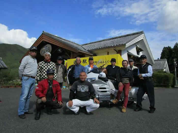 秋晴れのもと、風に乗って、ぐるっと一周、熊野、十津川路を駆ける。 お昼に到着。 本宮道の駅で集合写真。