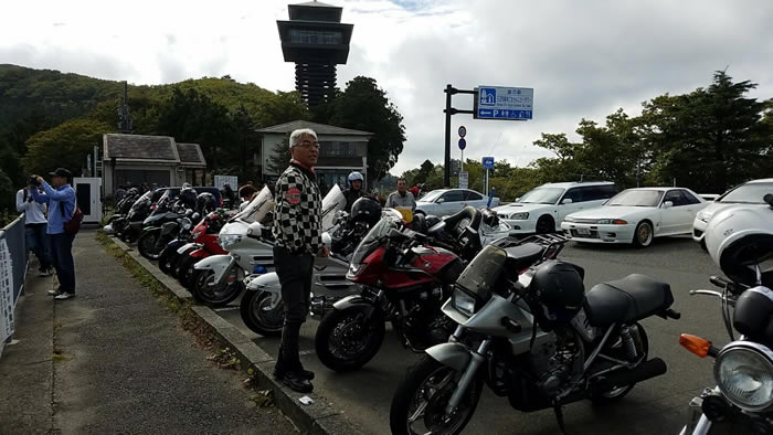 龍神スカイラインの護摩壇山PAは、ツーリングのバイクがいっぱい。