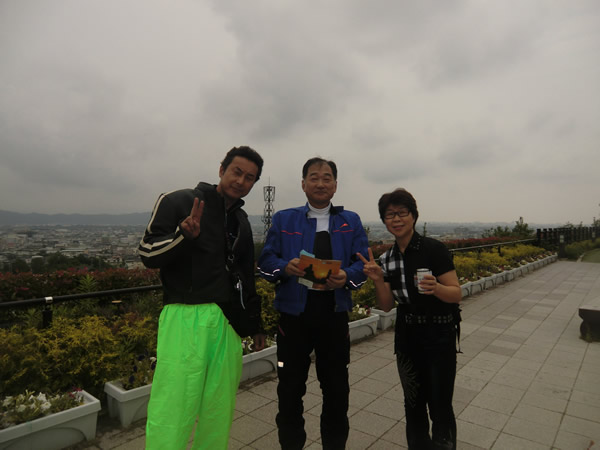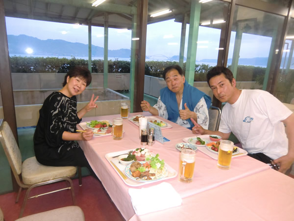 今夜は、バイキングだ、お腹を空かしておこう・・・きーさん、いっちゃん、さんちゃん、紀ノ川 SAにて。 |