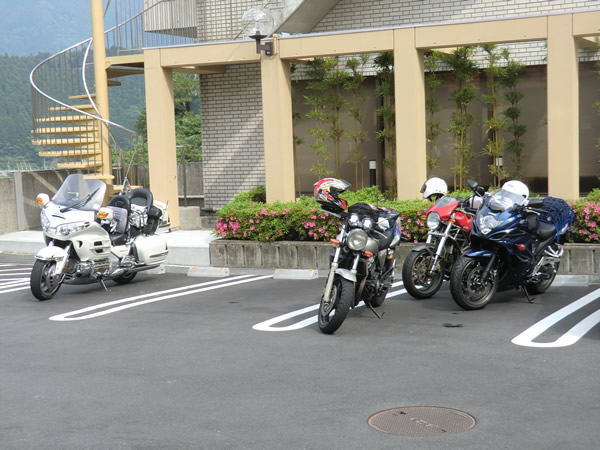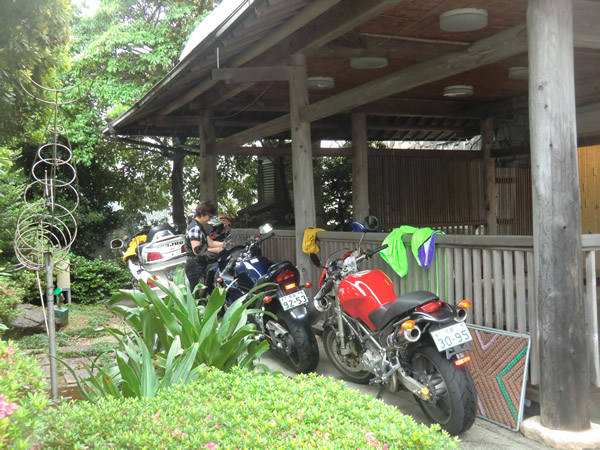 バイクは、ホテルの方の案内で、玄関の軒下に駐車。感謝します。