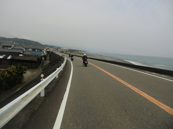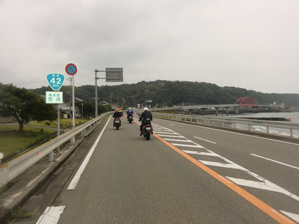 阪和道の最終、南紀田辺ICをでる。途中、南部で雨、合羽を着る。R42へ。